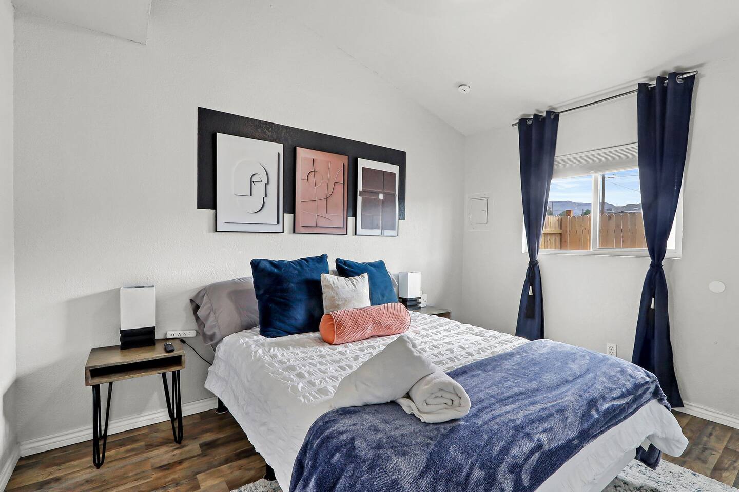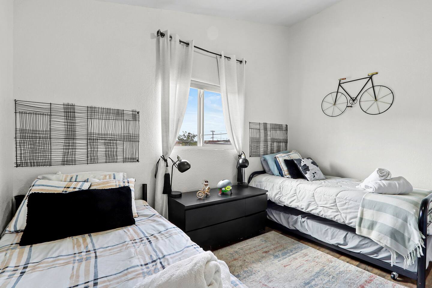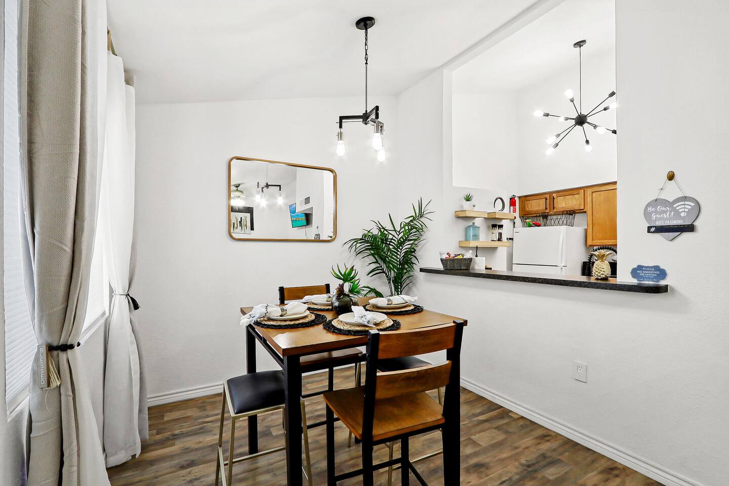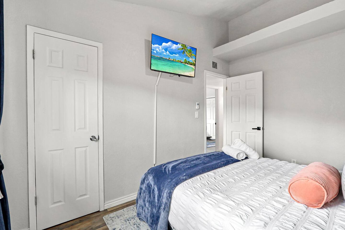 ⭑Master Bedroom:⭑ ✔ Spacious and serene, the master bedroom offers a plush queen-sized bed. ✔ Enjoy plenty of closet space for your belongings and a peaceful ambiance. ⭑Second Bedroom:⭑ ✔ Cozy and welcoming, this room features two single beds, making it perfect for small families or friends. ✔ Thoughtfully decorated to ensure a restful night’s sleep. ⭑Living Room:⭑ ✔ Stylishly furnished with ample seating, perfect for unwinding after a day of exploring. ✔ Equipped with a flat-screen TV for your entertainment needs. ⭑Kitchen and Dining Area:⭑ ✔ Fully equipped kitchen with modern appliances, perfect for preparing your favorite meals. ✔ Dining area seats four comfortably, creating a cozy space for meals and conversations. ⭑Bathroom:⭑ ✔ Sparkling clean with all essentials provided, including fresh towels and toiletries. ✔ Features a tub/shower combo, ideal for a relaxing soak or a quick rinse. ⭑Outdoor Space:⭑ ✔ Enjoy the backyard, perfect for walking your dog. ⭑Additional Amenities:⭑ ✔ High-speed Wi-Fi ✔ Washer and dryer for your convenience ✔ Essentials such as linens, towels, and toiletries ⭑Safety and Security:⭑ ✔ Secure entry with a keyless lock system ✔ Smoke detectors and fire extinguisher available ⭑Entertainment and Connectivity:⭑ ✔ Smart TV with streaming capabilities ✔ Free high-speed Wi-Fi ⭑Heating and Cooling:⭑ ✔ Central air conditioning and heating ✔ Ceiling fans in key areas for added comfort ⭑Parking and Facilities:⭑ ✔ Private driveway with ample parking space ✔ Garage access for added convenience ⭑Services:⭑ ✔ Self-check-in with a smart lock ✔ Professionally cleaned before every stay Your stay at this renovated home promises comfort, convenience, and a memorable experience. Book now and enjoy your El Paso adventure in style! ⭑Conclusion⭑ We look forward to welcoming you to your home away from home. Don’t miss out—book your stay today!
