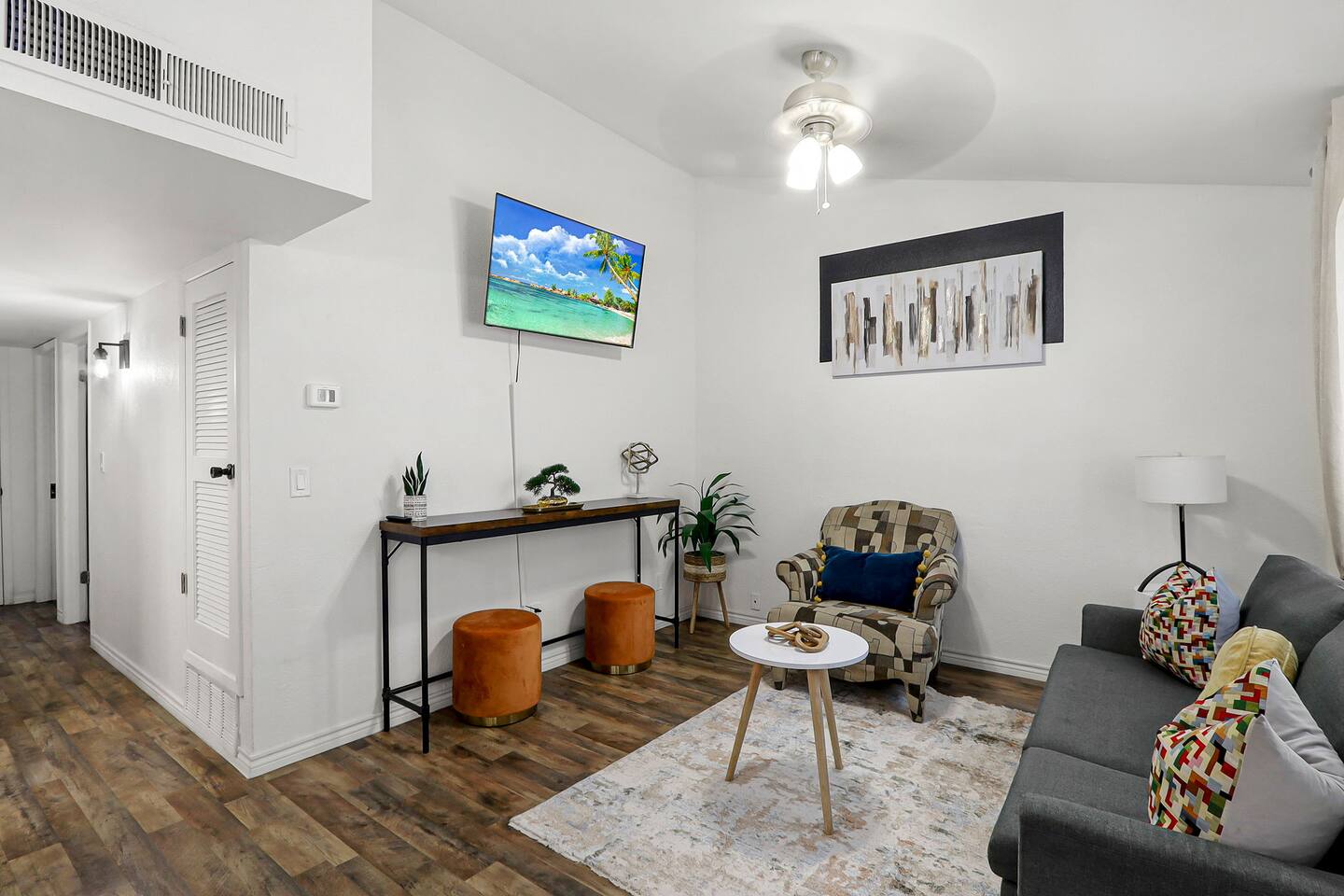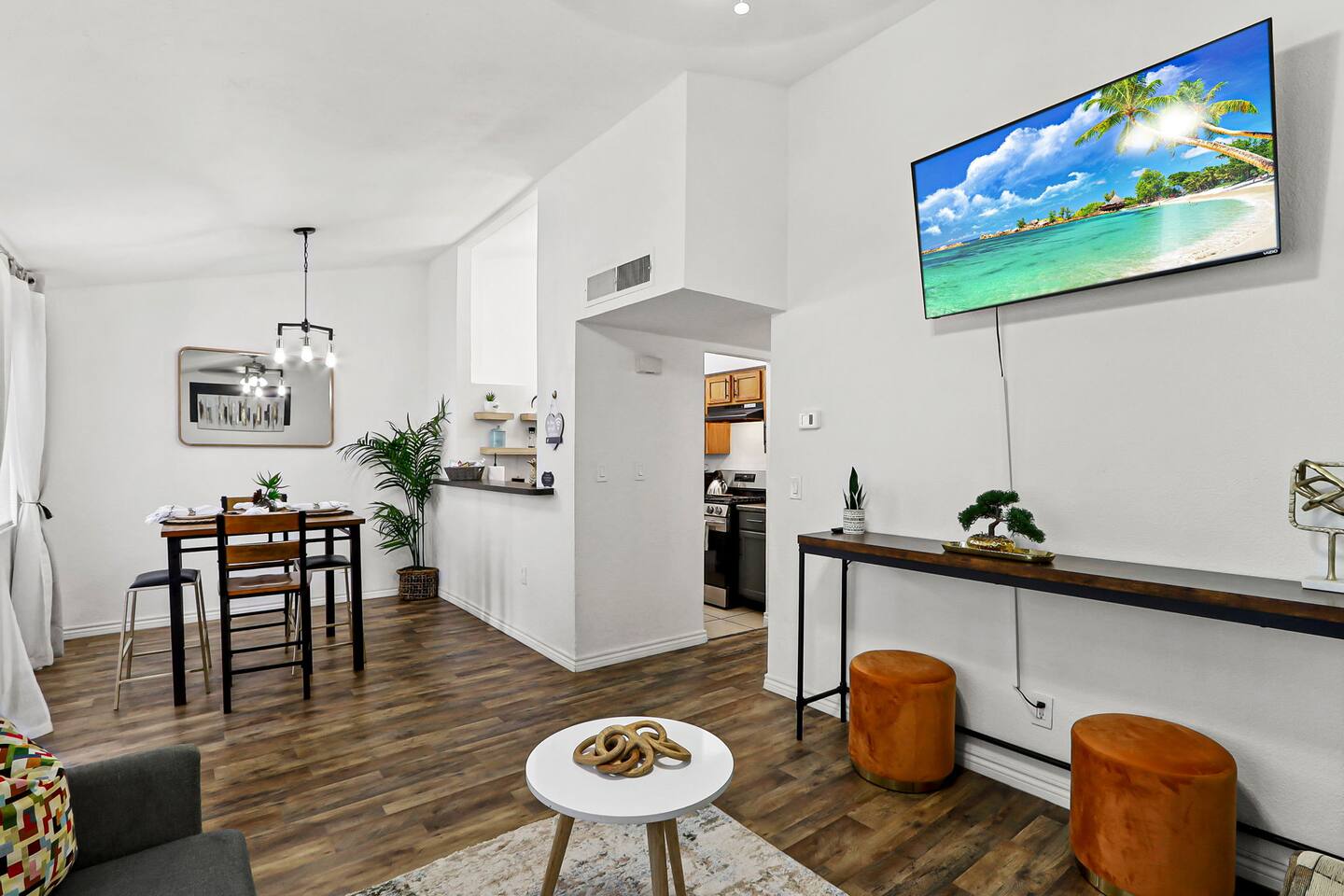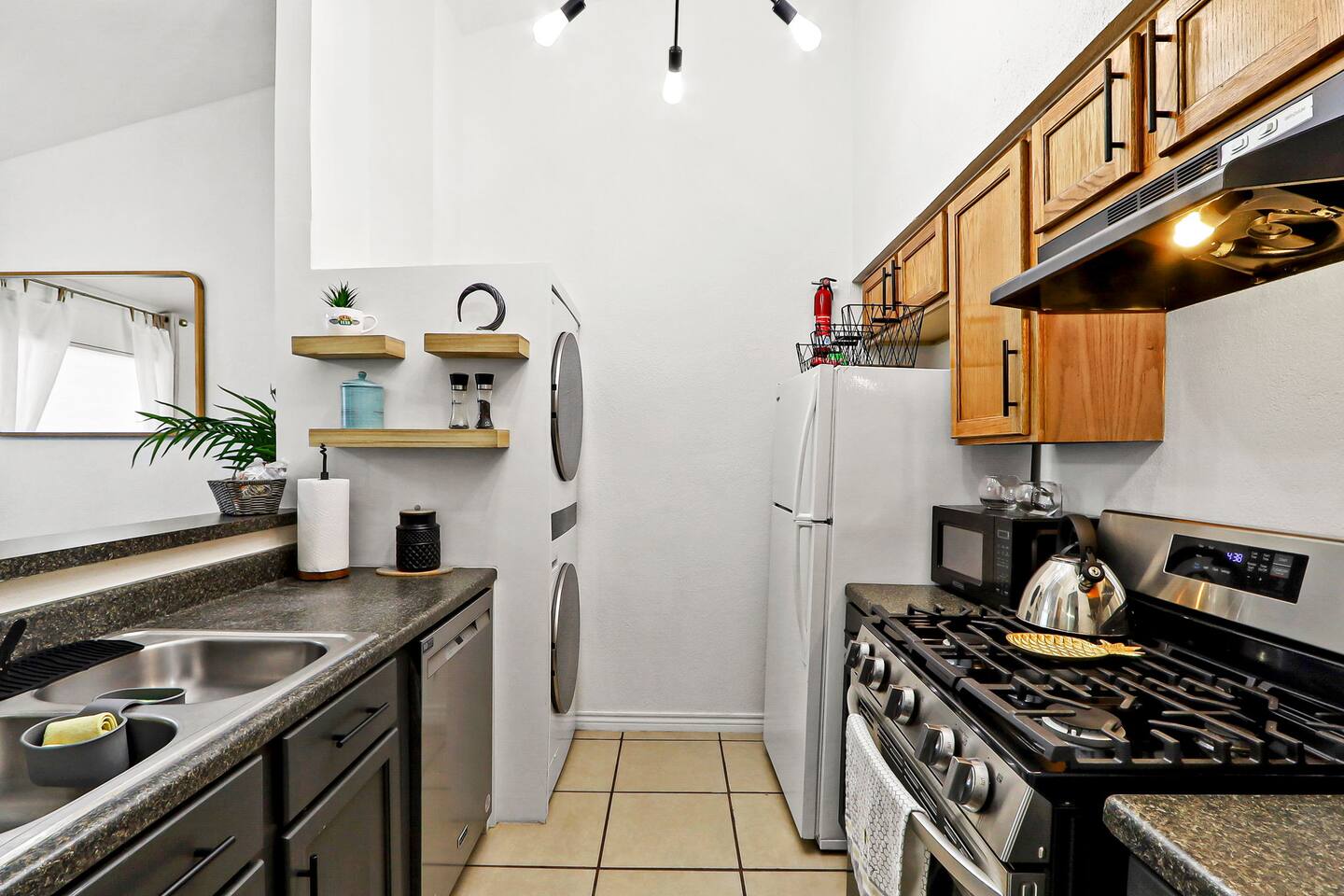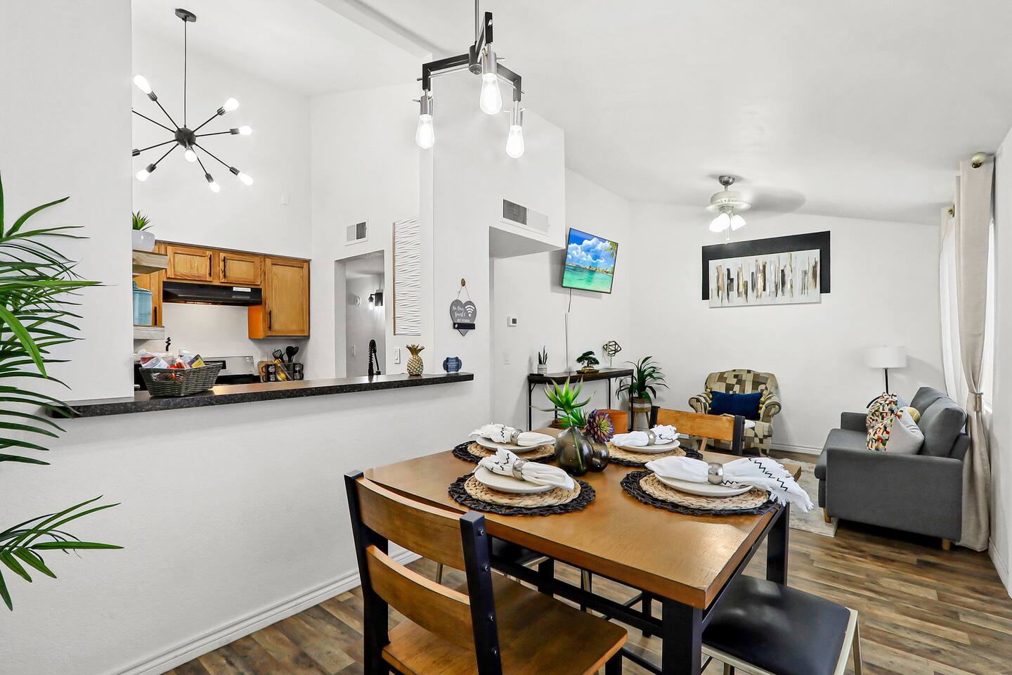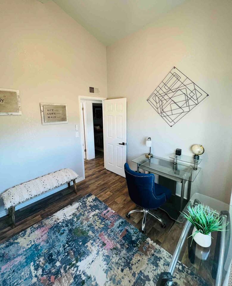 ⭑Master Bedroom:⭑ ✔ Spacious and serene, the master bedroom offers a plush queen-sized bed. ✔ Enjoy plenty of closet space for your belongings and a peaceful ambiance. ⭑Second Bedroom:⭑ ✔ Cozy and welcoming, this room features two single beds, making it perfect for small families or friends. ✔ Thoughtfully decorated to ensure a restful night’s sleep. ⭑Living Room:⭑ ✔ Stylishly furnished with ample seating, perfect for unwinding after a day of exploring. ✔ Equipped with a flat-screen TV for your entertainment needs. ⭑Kitchen and Dining Area:⭑ ✔ Fully equipped kitchen with modern appliances, perfect for preparing your favorite meals. ✔ Dining area seats four comfortably, creating a cozy space for meals and conversations. ⭑Bathroom:⭑ ✔ Sparkling clean with all essentials provided, including fresh towels and toiletries. ✔ Features a tub/shower combo, ideal for a relaxing soak or a quick rinse. ⭑Outdoor Space:⭑ ✔ Enjoy the backyard, perfect for walking your dog. ⭑Additional Amenities:⭑ ✔ High-speed Wi-Fi ✔ Washer and dryer for your convenience ✔ Essentials such as linens, towels, and toiletries ⭑Safety and Security:⭑ ✔ Secure entry with a keyless lock system ✔ Smoke detectors and fire extinguisher available ⭑Entertainment and Connectivity:⭑ ✔ Smart TV with streaming capabilities ✔ Free high-speed Wi-Fi ⭑Heating and Cooling:⭑ ✔ Central air conditioning and heating ✔ Ceiling fans in key areas for added comfort ⭑Parking and Facilities:⭑ ✔ Private driveway with ample parking space ✔ Garage access for added convenience ⭑Services:⭑ ✔ Self-check-in with a smart lock ✔ Professionally cleaned before every stay Your stay at this renovated home promises comfort, convenience, and a memorable experience. Book now and enjoy your El Paso adventure in style! ⭑Conclusion⭑ We look forward to welcoming you to your home away from home. Don’t miss out—book your stay today!